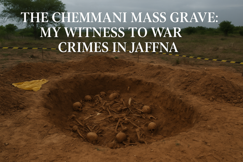 04 Oct War Crimes The Chemmani Mass Grave: My Witness to War Crimes in Jaffna October 4, 2025 By Kagusthan Ariaratnam 0 comments Facebook Twitter Email Pinterest linkedin Odnoklassniki WhatsApp WhatsApp VK Telegram Viber I have lived many lives inside one body. I was a child soldier, a spy, a prisoner, an informant, and at times a ghost moving between tw...Continue reading