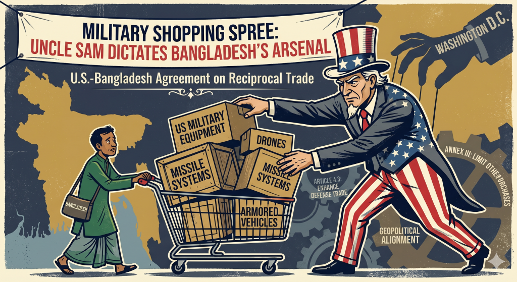 15 Apr International Relations Military Shopping Spree: Uncle Sam Dictates Bangladesh’s Arsenal April 16, 2026 By Ashu Maan 0 comments Facebook Twitter Email Pinterest linkedin Odnoklassniki WhatsApp WhatsApp VK Telegram Viber Bangladesh is not being offered a trade agreement in the ordinary sense. It is being handed a strategic compliance package dressed up a...Continue reading