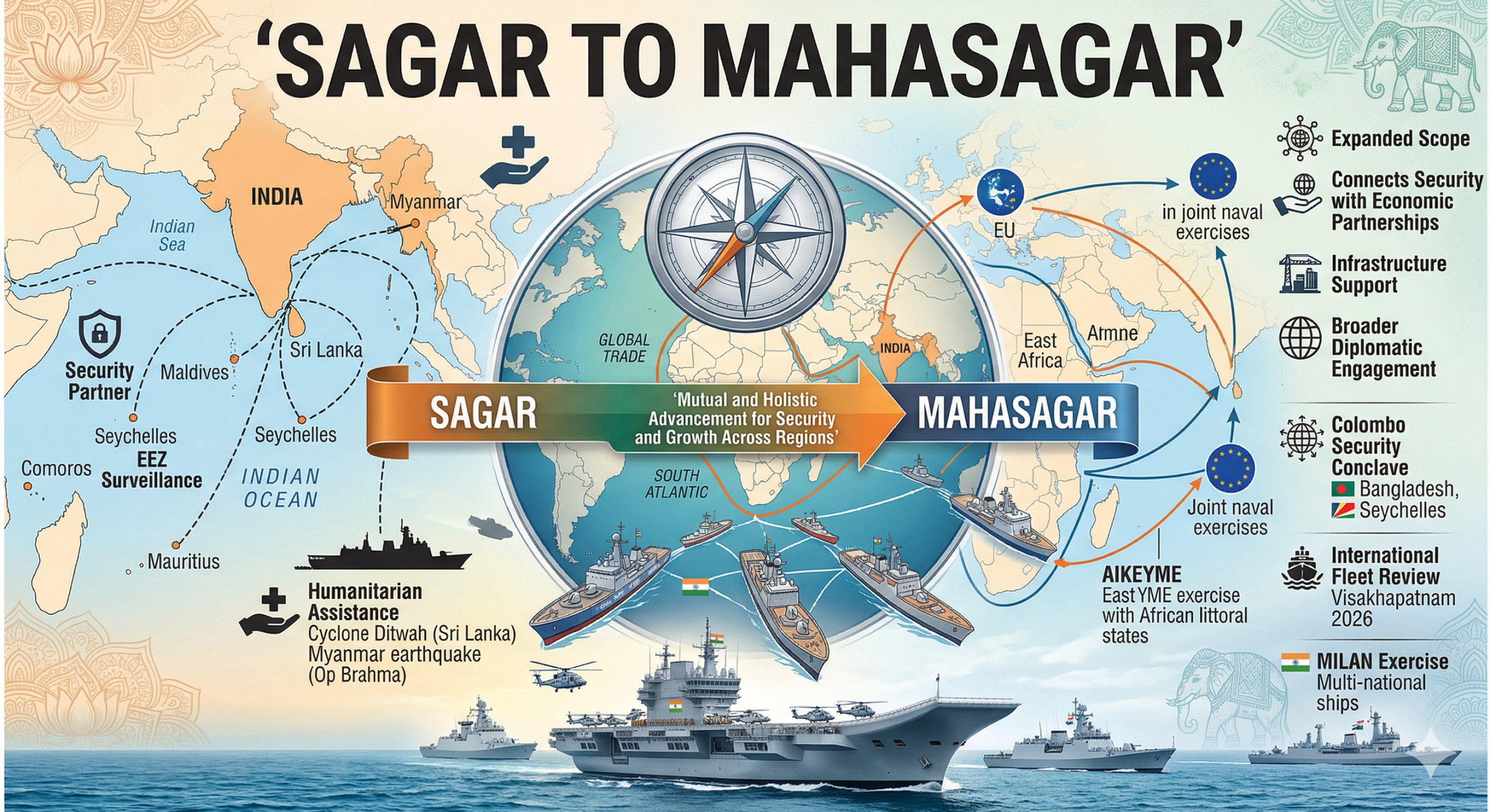 A year after Prime Minister Narendra Modi unveiled the MAHASAGAR vision during his visit to Mauritius, India’s maritime strategy is entering a new phase. The initiative marks an evolution of the earlier SAGAR doctrine—Security and Growth for All in the Region—which for nearly a decade guided India’s engagement with countries across the Indian Ocean.